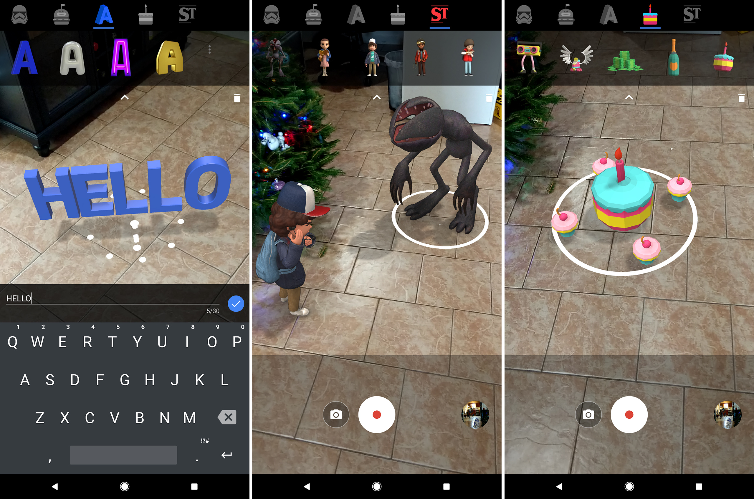 Characters don't really do much. Sometimes you'll get a laser blast from a Star Wars ship, or a droid will roll around. But not much else. Characters mostly cycle through a set of idle animations while you look at them. If you add two characters to a scene, sometimes things get interesting. The best one I've seen is what was demoed at Google's announcement event: plop down a Demogorgon and Eleven from the Stranger Things section and they will fight.